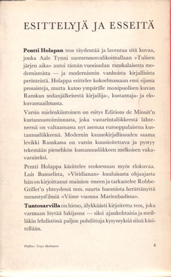 modernismin vanhoista kirjallisista perinteistä. Holappa esittelee